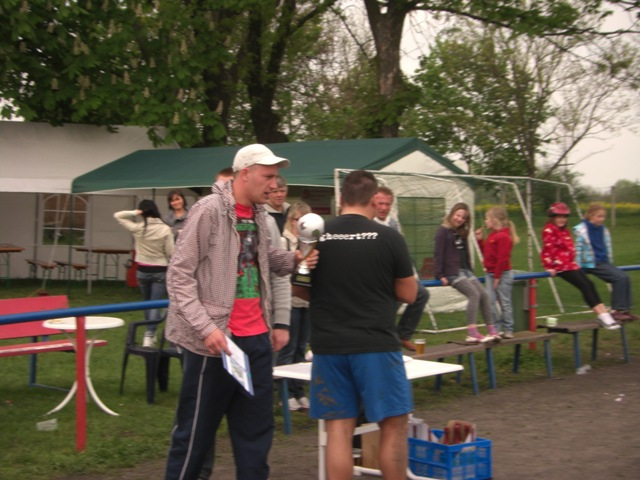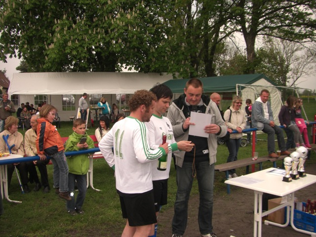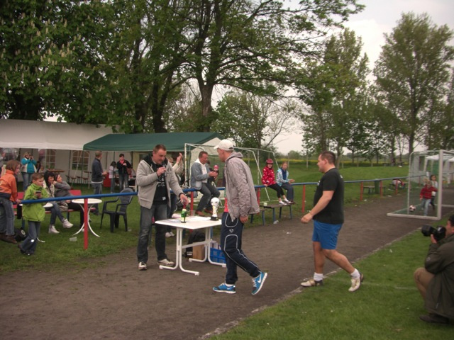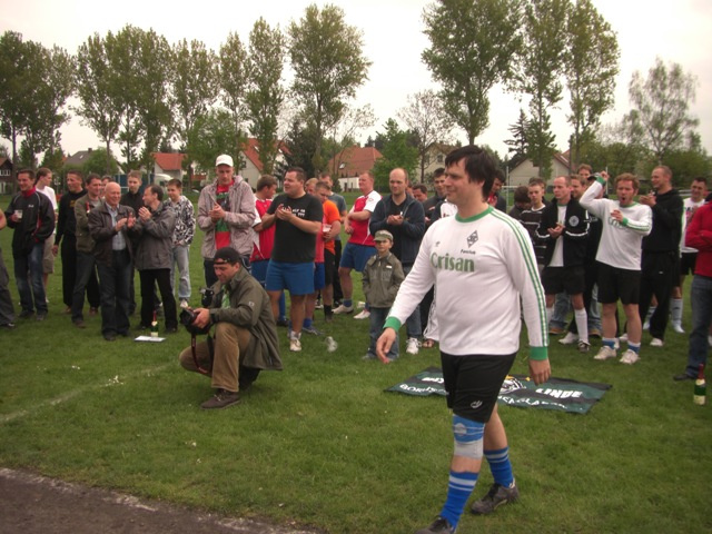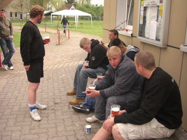 Im ersten Spiel ging es gegen die Mannschaft „Fitness House“, deren Spieler zwar muskulös waren, aber das Fußballspielen zum Glück nicht beherrschten. Nach vielen vergebenen Torchancen trafen Rayk und Kretsche zum ungefährdeten 2:0 Sieg. Im zweiten Spiel stand man der Mannschaft „Gasthaus Schmiede“ gegenüber. Diese hatte ihr erstes Spiel souverän gewonnen und so gab es Torchancen auf beiden Seiten. Die Treffer von Banskas „Lehrling“ und Blechi reichten leider nicht zum Sieg und so trennte man sich 2:2. Im letzten Gruppenspiel traf man auf die Mannschaft „Volkssport Lindenthal“ und es ging um den Einzug ins Halbfinale. Zum Leidwesen des Mannes in schwarz erzielte Banskas „Lehrling“ mit seinem zweiten Treffer das 1:0 Siegtor. Es reichte in unserer Gruppe zu Platz 2. Das Halbfinale pfiff leider wieder der Mann in schwarz, den ein Großteil unserer Mannschaft aus dem Ligabetrieb kannte. Einige fragwürdige Entscheidungen störten das Spiel und durch eine kleine Unaufmerksamkeit fiel der Gegentreffer. Der Gegner hatte noch diverse Torchancen, aber unser Torwart Schulle hielt Weltklasse und ließ die gegnerischen Stürmer schier verzweifeln. Unsere Mannschaft versuchte alles, aber etwas Zählbares kam nicht heraus. Am Ende verlor man gerecht 0:1, was für uns das Spiel um Platz 3 bedeutete. Dort traf man wieder auf die Mannschaft „Gasthaus Schmiede“, die ihr Halbfinale ebenfalls verloren hatten. In diesem Spiel ging unsere Mannschaft sprichwörtlich „auf dem Zahnfleisch“, 2 Auswechselspieler waren an diesem Tag einfach zu wenig. Trotz der konditionellen Unterlegenheit schlug man sich wacker und Torwart Schulle musste nur einmal hinter sich greifen. Keinem Spieler, auch nicht unserer Geheimwaffe „Stoßstürmer Lazi“, gelang es den Ball im Netz unterzubringen und so erreichte man am Ende den undankbare 4.Platz.