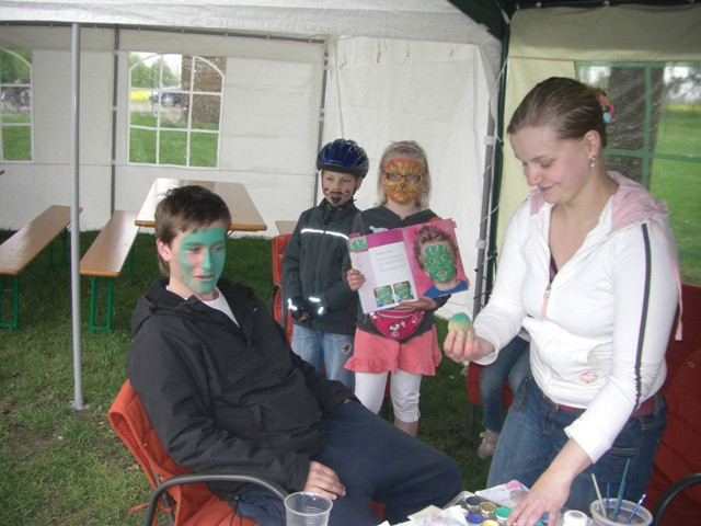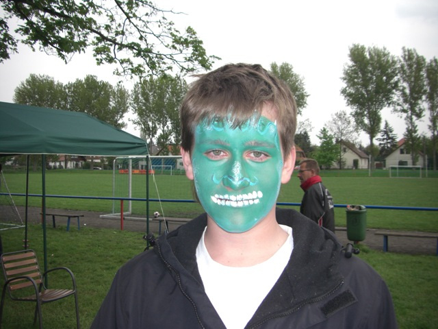 Unser Missionar „Schiri“ hatte die Idee ein Fußballturnier zu veranstalten, dessen Erlös der finanziellen Unterstützung des Vereins „Elternhilfe für krebskranke Kinder Leipzig e.V.“ dienen sollte. Am zweiten Samstag im Mai war es soweit, 8 Mannschaften trafen sich in den Vormittagsstunden, um die beste Firmen- und Freizeitmannschaft zu ermitteln. Unser Fanclub konnte bei einem solchen Ereignis nicht fehlen. Da das Startgeld vollständig in den Spendentopf ging, packte unser Präsi noch ein paar Euro drauf, so dass vor dem Start ein Spendenbetrag von zusammen 101,90€ von uns kam. Den krummen Betrag kann nur der Überweiser erklären. Pünktlich trafen sich die Missionare auf dem Sportplatz, brachten die Banner an und zogen sich in der Kabine um. Nach der Begrüßung durch unseren Schiri begannen gleich die Spiele in der jeweiligen Gruppe.
