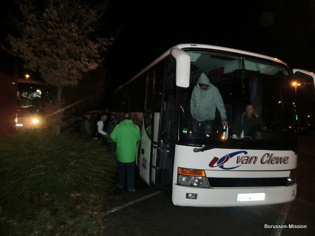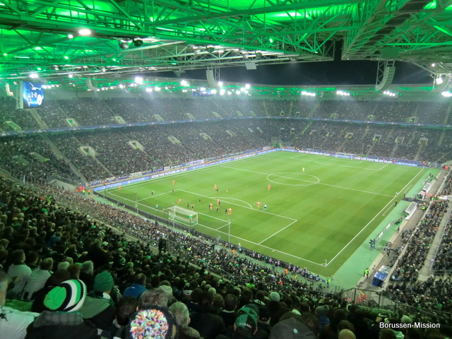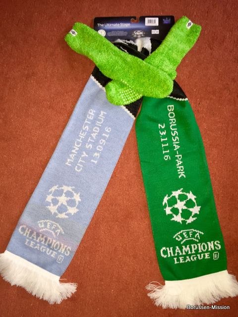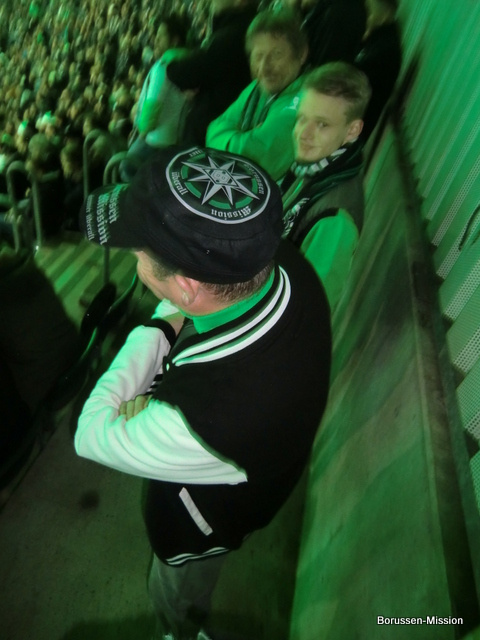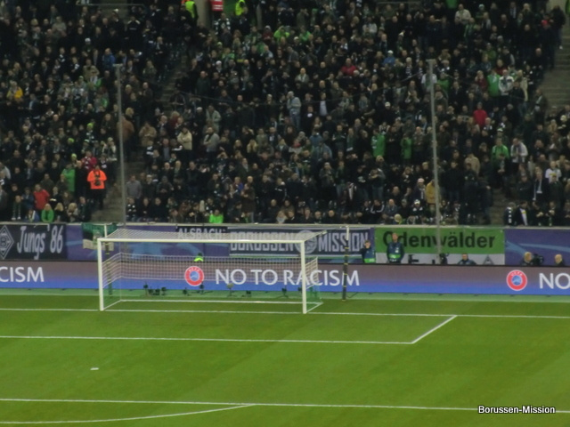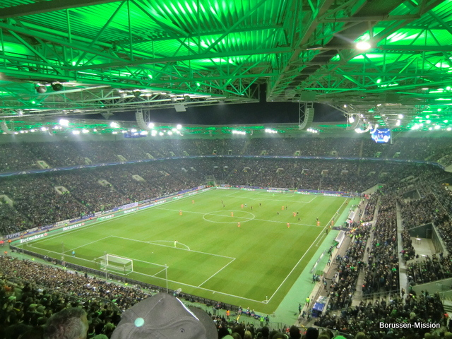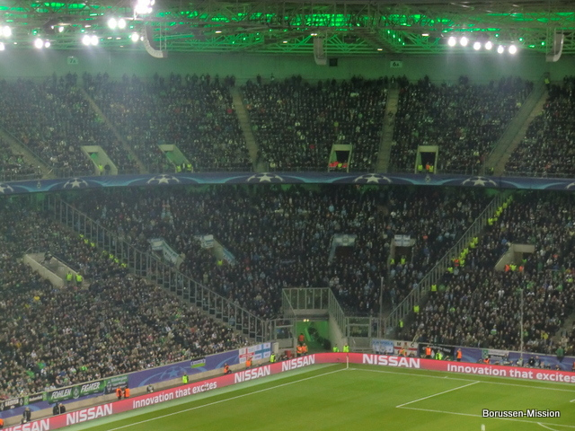 Zum vorerst letzten Heimspiel unserer Borussia in der UEFA Champions League kamen in den Borussiapark die Citizen aus Manchester. Laut Geschichte des Vereins wurde er im Jahr 1880 als West Gorton Saint Marks gegründet und spielte ab 1887 unter dem Namen Ardwick A.F.C. ehe 1894 der endgültige Name Manchester City F.C. entstand. Der Verein ist folglich 5 Jahre älter als unsere Borussia. Laut UEFA-Klubrangliste kam zur sechsbesten deutschen Mannschaft die drittbeste englische. Aber zwischen beiden Mannschaften befanden sich zu Beginn der Saison 38 andere Mannschaften und 57 222 Punkte, also mehr Punkte als unsere Borussia zu diesem Zeitpunkt hatte. Obwohl der Sieger nicht nur durch diese Statistik fast feststand, wollten sich etliche Borussen das Spiel auf Europas höchster Fußballebene nicht entgehen lassen. Eine Autobesatzung mit Missionaren startete kurz nach dem Frühstück im Nebel an der Elbe. Dieses Mal nahmen sie die seltenere Nordroute nach Mönchengladbach. Von der Autobahn 14 ging es über die 2, 3 und 40 an den Niederrhein. Ohne größere Verzögerungen erreichten sie den Nordpark und da es um die Mittagszeit war, gab es eine Stärkung im “Gladbach” bevor es in den Fanshop ging. Dieses Mal ging es für die Missionare zum “Hobbit” im Heimatort von Terrier Berti Vogts. Obwohl die Hoteliers gerade einen Umbau machen, brachten sie die Missionare nach Kaffee und Kuchen noch zum Fanhaus. Dort traf man etliche bekannte Borussen, aber so richtig füllen wollte sich der Fantreff nicht. Um das Banner noch anzubringen, ging es recht zeitig zum Stadion und dort auch noch in den Biergarten vor der Nordkurve. Als das Ehrenmitglied der Mission mit dem Bus ankam, wurde es am Busparkplatz begrüßt, ehe es in den Oberrang des fast ausverkauften Borussiaparks ging. Es ist schon verwirrend, da spielen unsere Fohlen in der Champions League und das Stadion ist nicht ausverkauft, wo sind wir jetzt schon hingekommen! Alle im Stadion erfreuten sich an der Hymne der Champions League, ehe das vorletzte Gruppenspiel unserer Borussia in der Gruppe C begann.