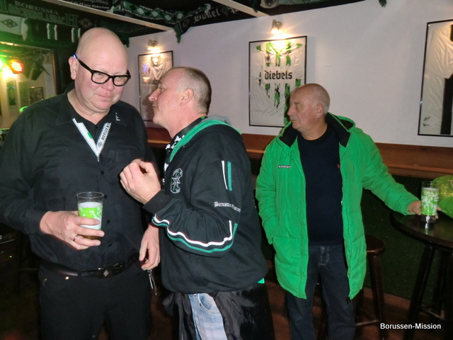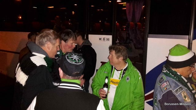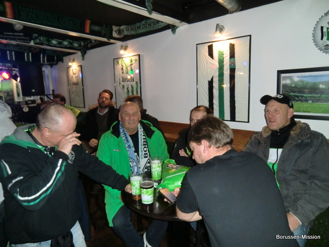Nach dem Spiel verabschiedeten sich die Borussen von den Heimfahrern bevor es noch einmal ins Fanhaus ging. Dort waren neben dem Spiel und mögliche Gegner in der Europa League auch die Zuschauerzahl und die Pfiffe Themen der Nacht. Zu später Stunde ging es dann mit dem Taxi zurück nach Kleinenbroich und nach dem Frühstück entlang der Hinroute zurück in die Heimat. Was im letzten Jahr nicht gelang, schafften in diesem Jahr unsere Fohlen in der Champions League, den dritten Platz und dies weder in einer Hammergruppe und im Februar erwarten uns mindestens zwei weitere Spiel auf internationalem Rasen. Eine schöne Tour endete zum Kaffeetrinken wieder an der Elbe.