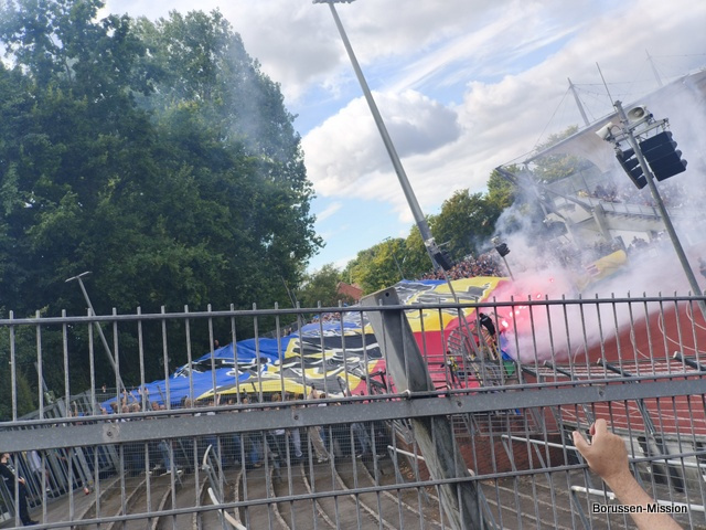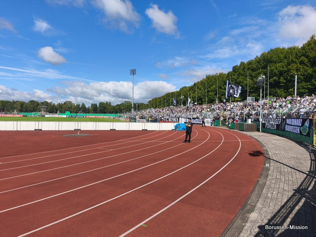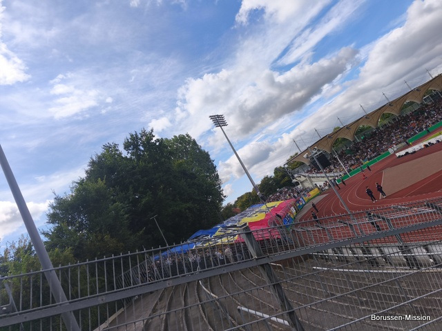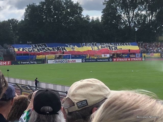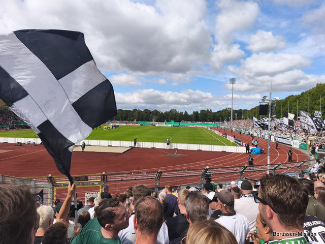 Das erste Pflichtspiel der Saison 2025/26 lockte uns ins niedersächsische Oldenburg. Im Dortmunder Fußballmuseum hatte Mitte Juni der aktuell schnellste Deutsche Owen Ansah die Paarungen für die erste Runde des DFB-Pokals mit Unterstützung des DFB-Vizepräsidenten Peter Frymuth und Moderatorin Lili Engel gezogen. Es wurde aber nicht der VfB Oldenburg gezogen, sondern der SV Atlas Delmenhorst, der aktuell in der Oberliga Niedersachsen spielt. Als Ursprung des Vereins kann man den SSV Delmenhorst bezeichnen, dessen Gründung auf das Jahr 1900 zurück geht. Es kam am 13.07.1973 zur großen Fusion vom SSV Delmenhorst, Roland Delmenhorst (Namensinspirant soll der Bremer Roland gewesen sein) und dem VSK Bungerhof. Erst durch die große finanzielle Unterstützung durch den Baumaschienenhersteller Atlas Weyhausen kam es zur Fusion. In den Vereinsnamen wurde Atlas eingepflegt und die blau-gelben Stadtfarben wurden die Vereinsfarben. 1980/81 qualifizierten sich die Delmenhorster für den DFB-Pokal. Im Achtelfinale trafen sie auf Borussia Mönchengladbach. Auf dem Böckelberg verloren sie 6:1 und schieden aus. In den Folgejahren ging es stetig bergab. Im Jahr 2002 folgten die Insolvenz und sogar die Streichung aus dem Vereinsregister. Am 4.4.2012 wurde der SV Atlas Delmenhorst neu gegründet und nach vier Aufstiegen in fünf Jahren kamen sie in der Oberliga Niedersachsen (5.Liga) an. Im Jahr 2019/2020 trafen sie in der ersten Runde des DFB-Pokals auf Werder Bremen und verloren im ausverkauften Bremer Weserstadion mit 1:6. In der Saison 2023/24 trafen die Delmenhorster in der ersten Runde des DFB-Pokals auf die Kiezkicker aus Hamburg. Sie verloren vor 4999 Zuschauern mit 0:5 im ausverkauften heimischen Stadion. Da im heimischen Stadion an der Düsternortstraße offiziell nicht so viele Zuschauer zugelassen sind, sahen sich die Verantwortlichen nach einem größeren Stadion um. Mit dem Stadion am Marschweg in Oldenburg fanden sie in nur knapp 35 Kilometern Entfernung einen passenden Austragungsort. Die Eintrittskarten waren schnell vergriffen und unter ihnen waren auch Missionare. Eine gemeinsame Tour kam leider nicht zu Stande und so machten sie sie einzeln mit Autos oder der Bahn auf dem Weg in die kreisfreie Stadt mit mehr als 175 000 Einwohnern.
