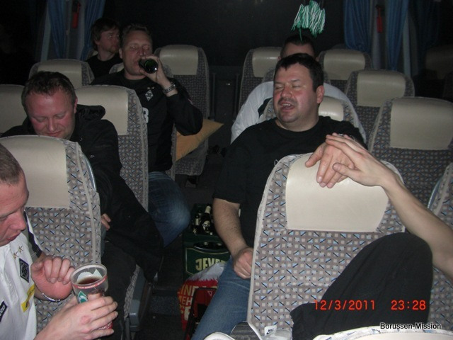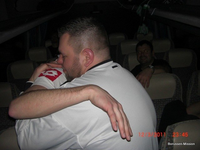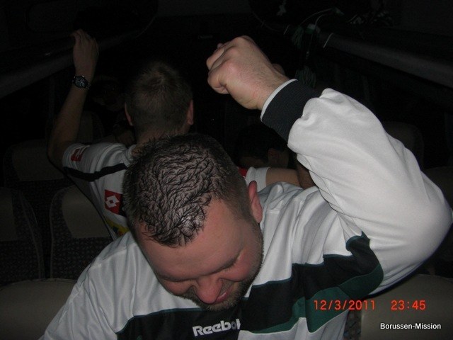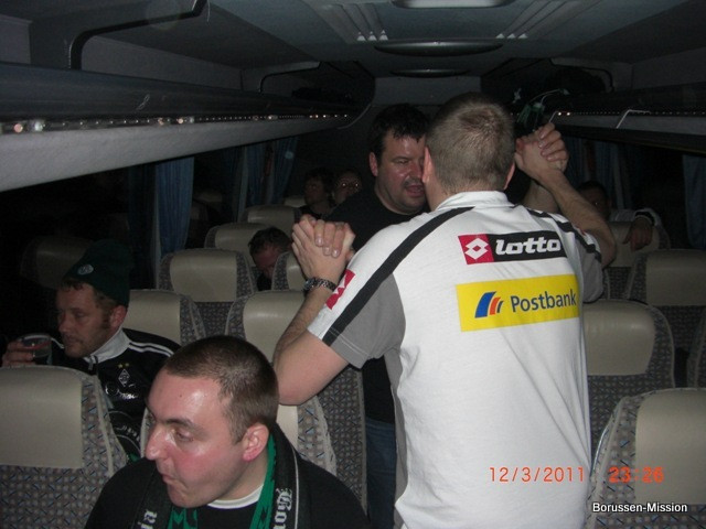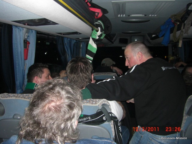 Man blieb noch lange im Block und plötzlich sangen viele Borussen den Musiktitel von Mickie Krause „Schatzi schenk mir ein Foto“. Dieser hat zwar nichts mit Gladbach zu tun, aber toll angehört hat es sich trotzdem. Am und im Bus wurde das Spiel noch lange ausgewertet und Sonntag früh waren dann alle glücklich wieder zu Hause.