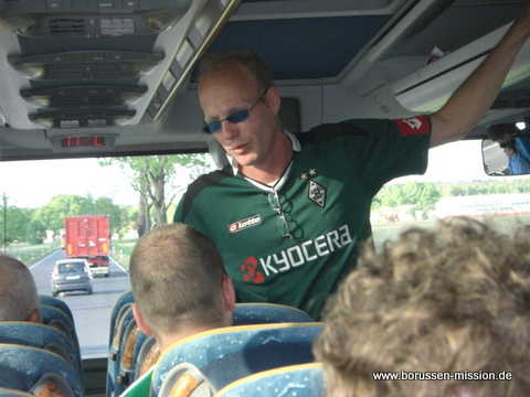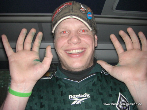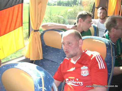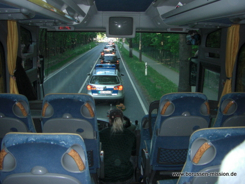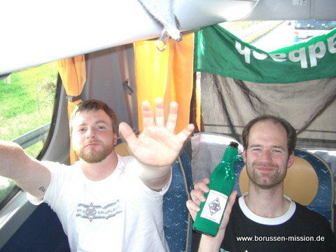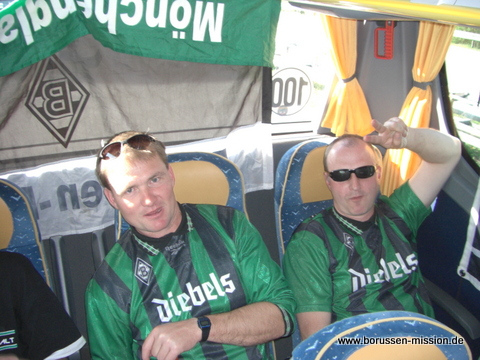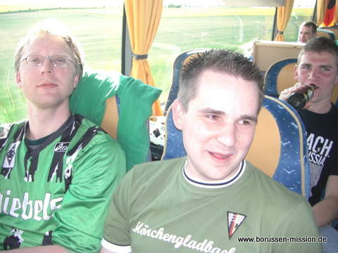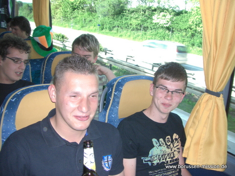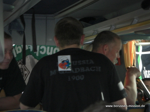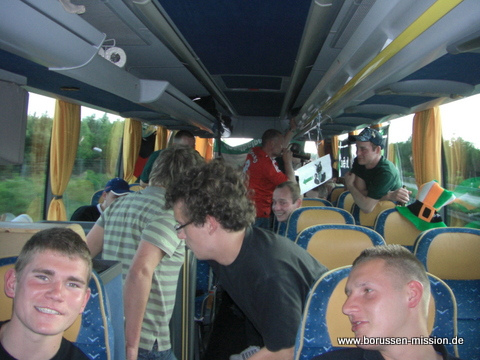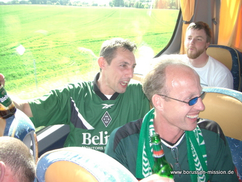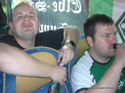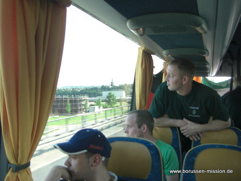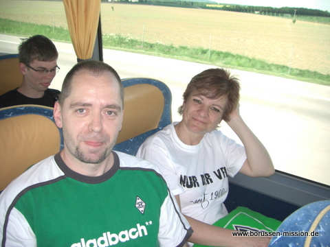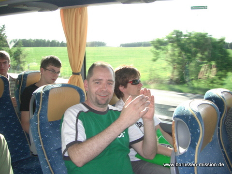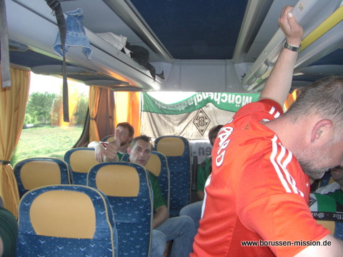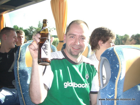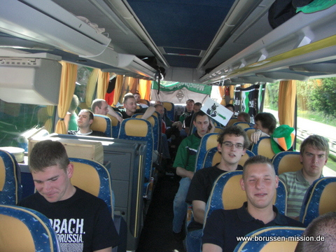 Mit dem Bus ging am Mittwoch um die Mittagszeit in die Lausitz. Unterwegs wurden noch Borussen der ForeverYoung98 eingesammelt. Die letzten Kilometer zum Stadion wurden mit Begleitung zurückgelegt. Bei herrlichem Sonnenschein erwarteten viele Borussen ein kampfbetontes Spiel, da zwei Mannschaften um den Verbleib in der Bundesliga spielten. Die Fohlen waren nach dem Heimsieg gegen Schalke 04 auf Platz 15 geklettert, während die Lausitzer gegen Bayern München auf Platz 17 rutschten. Die erste Halbzeit war ohne Chancen. Im zweiten Durchgang konnten die Hausherren einen Abwehrfehler nicht nutzen, Bailly im Tor der Fohlen war zur Stelle. Im Gegenzug prüfte ein eigener Spieler den Lausitzer Torwart Tremmel. Es folgten weitere Chancen für beide Mannschaften. Einen Schuss von Baumjohann kratzte ein Cottbuser noch von der Torlinie, nachdem Tremmel bereits umspielt war. Das Spiel flachte ab und alle rechneten schon mit einem Unentschieden. Da brachte Marko Marin einen Eckball in den Strafraum. Dante kam an das Spielgerät und köpfte es ins Tor, der Gästeblock tobte. Tobias Level warf sein Trikot in den Gästeblock und ein Missionar war der glückliche Fänger. Feucht fröhlich ging es nach Hause.
