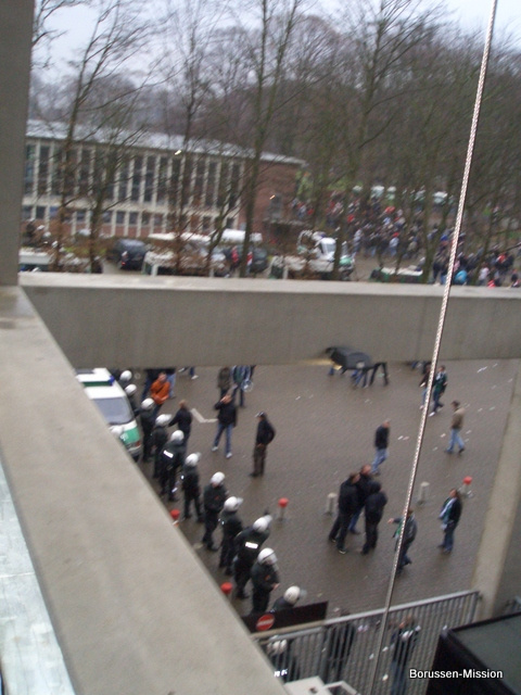 Nach dem Spiel mussten alle Gäste noch eine längere Zeit am Stadion ausharren. Einige Fans der Hausherren beschäftigten die Polizei. Irgendwann durften alle zum Bus und eine glückliche Heimreise folgte. Am Ende des Spieltages erreichten die Fohlen durch den Auswärtssieg den Relegationsplatz.