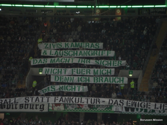 Mit einem Bus ging es zum Spiel am Dienstagabend und dem Besuch der Preparty des ortsansäßigen Fanclubs „Bökelbären“. Dort wurde Stimmung gemacht, was sie sonst wohl nicht so gewohnt waren. Sie brachten alle später mit einem gecharterten Linienbus rechtzeitig zum Spiel. Das anfängliche Strohfeuer der Fohlen erlosch schnell und man konnte feststellen, wer wo in der Tabelle zu finden ist. Als 5 Minuten vor dem Halbzeitpfiff, der sonst in der Regionalliga West im Tor stehende dritte Torwart der Fohlen bei seinem Bundesligadebüt Grafite von den Beinen holte, gab es Elfmeter, den der Brasilianer verwandelte. Nach dem Kopfballtreffer von Madlung war kaum noch eine Struktur im Spiel der Fohlen zu erkennen. So gab es etliche weitere Chancen für die Gastgeber, ehe Gal Albermann im Strafraum Gentner foulte und es erneut Strafstoß gab. Auch dieser wurde verwandelt. Enttäuscht ging es die kurze Reise nach Hause.