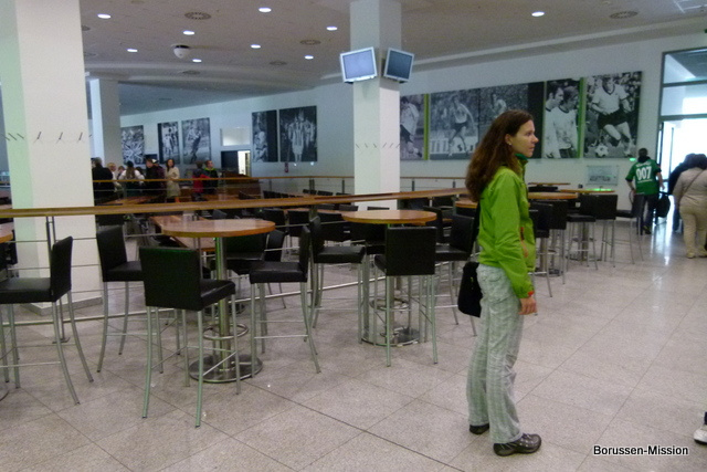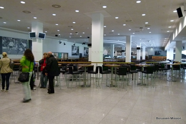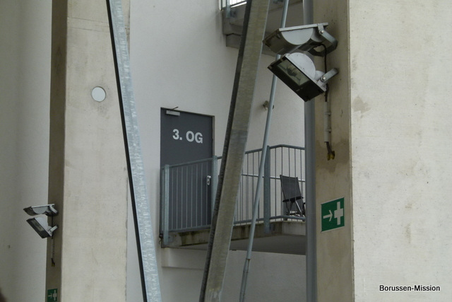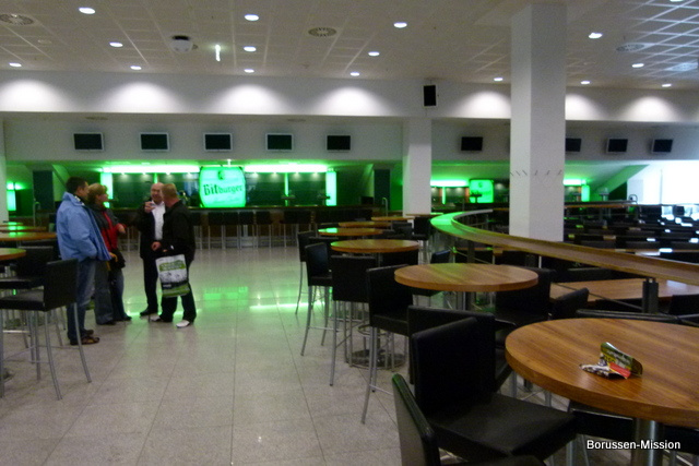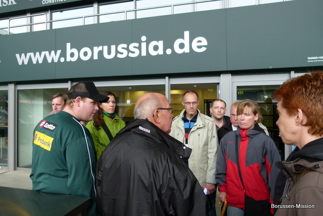 Die Fanclubvertretung hatte aber noch einen Termin mit Max Eberl und Michael Plum (Leiter Verwaltung). Das Fanprojekt hatte zu einem „Runden Tisch“ mit dem sportlicher Leiter und dem Vertreter für den kaufmännischen Teil eingeladen. Ungefähr 200 Vertreter der Fanclubs waren der Einladung gefolgt. Max Eberl erläuterte die Transferpolitik, die Finanzplanung und sportliche Zielrichtung des Vereins und klärte bezüglich einiger Missverständnisse auf, die durch die Medien transportiert wurden. Die Fans stellten sehr zurückhaltend Fragen, wobei einige schon recht fraglich waren (Anstoßzeiten, Parkplatzgebühren, Topspielzuschlag). Den meisten Fans ging es aber um die Spielerpolitik und so stellte Max die Dinge aus seiner Sicht noch einmal klar (Bradley, Levels, Dante, King, Otsu). Auch die Darstellung in den Medien wurde erläutert, wobei auch wir oft schon erlebt haben, dass nicht immer das abgedruckt wird, was man gesagt hat. Anschließend nutzte man noch die Möglichkeit für eine sechzig minütige Stadionführung. Leider konnte man nur die Gästekabine besichtigen und auch der Bereich der Polizei war durch die Veranstaltung um das Stadion gesperrt. Interessant war es trotzdem und so war es bereits 17 Uhr als es zurück in die Heimat ging. Auch wenn das Wetter hätte angenehmer sein können, war es doch ein interessantes und informatives Wochenende.