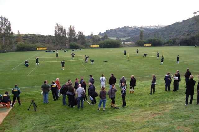 Für das Wintertrainingslager 2011 entschied sich die Vereinsführung von Borussia Mönchengladbach wieder für das im letzten Jahr schon besuchte La Cala Hotel und Golf Resort in Andalusien. In diesem Jahr wollten sich 11 Freunde aus den neuen Bundesländern (2 Starke Sachsen, 2 Kyffhäuserfohlen und 7 Missionare) diesen Höhepunkt nicht entgehen lassen und starteten gemeinsam am 03.01. ihre Reise ab dem Sammeltreffpunkt Aken. Dort gab es eine kleine Stärkung und danach ging die Reise auch schon mit 2 Taxikleinbussen in Richtung Abflughafen Berlin-Schönefeld. Die dortige Wartezeit wurde im Irish-Pub überbrückt und da man eine Reservierung hatte, beeilte man sich auch nicht beim Einsteigen. Da man mit einem günstigen Anbieter reiste, wusste keiner, wie dies bei diesem abläuft. Keiner merkte die Extrareihe und das, dass diese Passagiere etwas zeitiger den Flieger betreten durften. Dort wäre auch ihr Treffpunkt gewesen, aber so reihte man sich in die Schlange der auf dem Rollfeld wartenden anderen Passagiere ein. Jeder fand dann einen Platz, auch wenn nicht alle zusammenhängend saßen. Leider hielt sich das Speisenangebot in Grenzen und auch so wurde einiges vermisst, beispielsweise eine Brechtüte. Naja, letztendlich kam man pünktlich in Malaga an und auch die Reiseleitung stand bereit. Mit einem Bus ging es dann zum Hotel „Las Palmeras“ nach Fuengirola, welches im Jahr zuvor bereits die Unterkunftsstätte der Borussenfans war, und etwas Trinkgeld landete auch in der „Kollekte“. Nach dem Frischmachen wurde die Umgebung erkundet und der Tag endete direkt gegenüber vom Hotel im „London Pub“. Irgendwann fanden alle den Weg ins Hotelzimmer und am nächsten Morgen ging es mit Kleinbussen zum Trainingsgelände unserer „Stars“. Bei angenehm milden Temperaturen platzierten alle ihre Fanclubfahnen und anschließend sah man sich die Trainingseinheit an, ließ sich danach mit den „Helden“ fotografieren und Autogramme geben, bevor es wieder zurück zum Hotel ging. Am Hafen wurde ein Lokal zum Essen aufgesucht und die „Markenware“ der fliegenden Händler begutachtet. Kurz darauf ging es zur Trainingseinheit am Nachmittag und für den Abend war der Fanabend im Golfresort der Profifussballer angesetzt. Die elf Freunde nahmen an zwei Tischen Platz. An einen gesellte sich Havard Nordtveit und an den anderen Tobias Levels und Michael Bradley. Es folgte ein prägender Spruch, der an Tobias gewandt war: „Un wie biste Wejhnachten noch Hemmejekomme?“ Das Gesicht unsere Nummer 22 war köstlich. Die Ansprache von Max Eberl war treffend, danach folgten angenehme Gespräche mit den Profi, viele Fotos und Autogramme. Es war ein gelungener Abend für jeden Gladbachfan. Am Ende des Abends fand den Weg ins „London Pub“ und die Nacht wurde lang. Am nächsten Morgen ging es nach dem Frühstück wieder zum Trainigsgelände und danach gab’s in einem spanischen Restaurant leckere Fleischgerichte. Anschließend besuchten einige das spanische Pokalspiel zwischen Malaga CF und dem FC Sevilla und die anderen suchten den Geocache am „Parque del Castillo“. Am Abend traf man sich, wie gewohnt im London-Pub und da am nächsten Tag der Feiertag „Die heiligen drei Könige“ war, hatte auch das Stangenlokal mal geöffnet. Viele Borussen kannten es noch vom letzten Jahr und so wurde dort bis tief in die Nacht gefeiert. Einige waren sich einig, dass die bis dahin gesehenen Trainingsmethoden schon zu DDR-Zeiten sogar auf Kreisebene trainiert wurden und man lieber mal ausschlafen sollte. Dies wurde teilweise umgesetzt. So starteten einige früh zum Trainingsgelände, einige am Wasser entlang zum Castillo und einige zum Geocache in der Nähe eines andalusischen Wahrzeichens. Gegen Mittag trafen sich alle im Hotel und es wurde noch ein T-Shirt signiert, welches beim Testspiel gegen den spanischen Viertligisten CD Estepona Max Eberl überreicht wurde. Dies sollte helfen, die Mission „Klassenerhalt“ noch zu verwirklichen. Nach ein paar Irrfahrten erreichte man das Sportgelände in Marbella und nachdem die Fanclubfahnen hingen, wurde erst einmal etwas zu trinken besorgt. Das Testspiel war recht zerfahren und der spanische Schiedsrichter zeigte nur so die Roten Karten für den Gegner. Man gewann mühelos und unser Trainer Michael Frontzeck tauschte gleich komplette Mannschaften aus. Der letzte Abend fand wieder im London-Pub sein Ende und nach einer kurzen Nacht stand recht früh der Bus zum Flughafen bereit. Problemlos verlief der Rückflug ins frostige Berlin. Die Taxikleinbusse verspäteten sich zwar ein wenig, aber in Anbetracht der tollen Tage interessierte dies keinen. Glücklich kehrten alle in ihre Heimatstädte zurück und alle waren sich einig, dies war nicht das letzte Trainingslager, welches man besucht hatte.