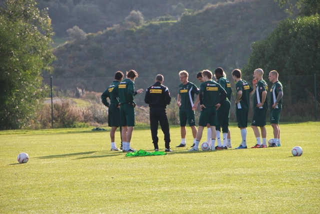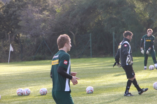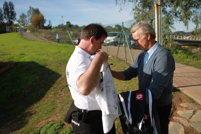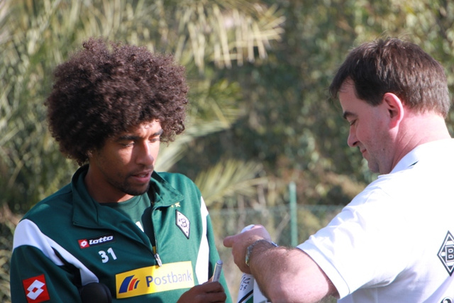 Für das Wintertrainingslager 2011 entschied sich die Vereinsführung von Borussia Mönchengladbach wieder für das im letzten Jahr schon besuchte La Cala Hotel und Golf Resort in Andalusien. In diesem Jahr wollten sich 11 Freunde aus den neuen Bundesländern (2 Starke Sachsen, 2 Kyffhäuserfohlen und 7 Missionare) diesen Höhepunkt nicht entgehen lassen und starteten gemeinsam am 03.01. ihre Reise ab dem Sammeltreffpunkt Aken. Dort gab es eine kleine Stärkung und danach ging die Reise auch schon mit 2 Taxikleinbussen in Richtung Abflughafen Berlin-Schönefeld. Die dortige Wartezeit wurde im Irish-Pub überbrückt und da man eine Reservierung hatte, beeilte man sich auch nicht beim Einsteigen. Da man mit einem günstigen Anbieter reiste, wusste keiner, wie dies bei diesem abläuft. Keiner merkte die Extrareihe und das, dass diese Passagiere etwas zeitiger den Flieger betreten durften. Dort wäre auch ihr Treffpunkt gewesen, aber so reihte man sich in die Schlange der auf dem Rollfeld wartenden anderen Passagiere ein. Jeder fand dann einen Platz, auch wenn nicht alle zusammenhängend saßen. Leider hielt sich das Speisenangebot in Grenzen und auch so wurde einiges vermisst, beispielsweise eine Brechtüte. Naja, letztendlich kam man pünktlich in Malaga an und auch die Reiseleitung stand bereit. Mit einem Bus ging es dann zum Hotel „Las Palmeras“ nach Fuengirola, welches im Jahr zuvor bereits die Unterkunftsstätte der Borussenfans war, und etwas Trinkgeld landete auch in der „Kollekte“. Nach dem Frischmachen wurde die Umgebung erkundet und der Tag endete direkt gegenüber vom Hotel im „London Pub“. Irgendwann fanden alle den Weg ins Hotelzimmer und am nächsten Morgen ging es mit Kleinbussen zum Trainingsgelände unserer „Stars“. Bei angenehm milden Temperaturen platzierten alle ihre Fanclubfahnen und anschließend sah man sich die Trainingseinheit an, ließ sich danach mit den „Helden“ fotografieren und Autogramme geben, bevor es wieder zurück zum Hotel ging. Am Hafen wurde ein Lokal zum Essen aufgesucht und die „Markenware“ der fliegenden Händler begutachtet. Kurz darauf ging es zur Trainingseinheit am Nachmittag und für den Abend war der Fanabend im Golfresort der Profifussballer angesetzt. Die elf Freunde nahmen an zwei Tischen Platz. An einen gesellte sich Havard Nordtveit und an den anderen Tobias Levels und Michael Bradley. Es folgte ein prägender Spruch, der an Tobias gewandt war: „Un wie biste Wejhnachten noch Hemmejekomme?“ Das Gesicht unsere Nummer 22 war köstlich. Die Ansprache von Max Eberl war treffend, danach folgten angenehme Gespräche mit den Profi, viele Fotos und Autogramme. Es war ein gelungener Abend für jeden Gladbachfan. Am Ende des Abends fand den Weg ins „London Pub“ und die Nacht wurde lang. Am nächsten Morgen ging es nach dem Frühstück wieder zum Trainigsgelände und danach gab’s in einem spanischen Restaurant leckere Fleischgerichte. Anschließend besuchten einige das spanische Pokalspiel zwischen Malaga CF und dem FC Sevilla und die anderen suchten den Geocache am „Parque del Castillo“. Am Abend traf man sich, wie gewohnt im London-Pub und da am nächsten Tag der Feiertag „Die heiligen drei Könige“ war, hatte auch das Stangenlokal mal geöffnet. Viele Borussen kannten es noch vom letzten Jahr und so wurde dort bis tief in die Nacht gefeiert. Einige waren sich einig, dass die bis dahin gesehenen Trainingsmethoden schon zu DDR-Zeiten sogar auf Kreisebene trainiert wurden und man lieber mal ausschlafen sollte. Dies wurde teilweise umgesetzt. So starteten einige früh zum Trainingsgelände, einige am Wasser entlang zum Castillo und einige zum Geocache in der Nähe eines andalusischen Wahrzeichens. Gegen Mittag trafen sich alle im Hotel und es wurde noch ein T-Shirt signiert, welches beim Testspiel gegen den spanischen Viertligisten CD Estepona Max Eberl überreicht wurde. Dies sollte helfen, die Mission „Klassenerhalt“ noch zu verwirklichen. Nach ein paar Irrfahrten erreichte man das Sportgelände in Marbella und nachdem die Fanclubfahnen hingen, wurde erst einmal etwas zu trinken besorgt. Das Testspiel war recht zerfahren und der spanische Schiedsrichter zeigte nur so die Roten Karten für den Gegner. Man gewann mühelos und unser Trainer Michael Frontzeck tauschte gleich komplette Mannschaften aus. Der letzte Abend fand wieder im London-Pub sein Ende und nach einer kurzen Nacht stand recht früh der Bus zum Flughafen bereit. Problemlos verlief der Rückflug ins frostige Berlin. Die Taxikleinbusse verspäteten sich zwar ein wenig, aber in Anbetracht der tollen Tage interessierte dies keinen. Glücklich kehrten alle in ihre Heimatstädte zurück und alle waren sich einig, dies war nicht das letzte Trainingslager, welches man besucht hatte.