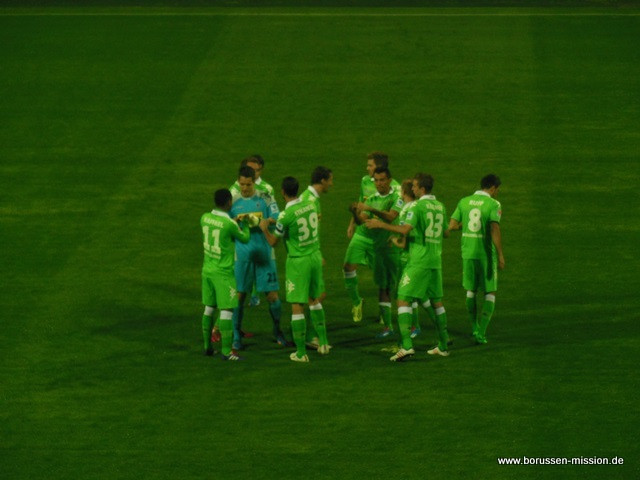 Wieder lockte das schöne Wetter nach dem Frühstück die einen zum Besuch der Trainingseinheit und die anderen zum Entspannen. Individuell verbrachte man den Tag bis zur Nachmittagstrainingseinheit. Diese war besser besucht als die am Vormittag, da ein gemeinsames Foto der mitgereisten Borussen mit der Mannschaft angekündigt war. Nach der Trainingseinheit wurden einige Zaunfelder geöffnet und man durfte zur Mannschaft auf den Rasen. Leider war zu dieser Zeit bereits die Sonne hinterm Horizont verschwunden und die Flutlichtanlage leuchtete das Gelände ungleichmäßig aus, so dass die Qualität der Fotos und des Gruppenfotos nicht die Beste ist. Dem Fotographen schwebte eine Raute als Motiv vor und die Beteiligten bemühten sich zwar, dies umzusetzen, aber wenn man in der Ebene steht und keine Markierung hat, fällt die Orientierung dazu schwerer. Wenn man dies weiß, kann man die Raute vielleicht erkennen. Zeit für ein kurzes Gespräch mit den Spielern blieb danach nicht mehr viel und so waren dann wenig später alle wieder in ihren Hotels und dort in den zahlreichen Lokalitäten verschwunden.