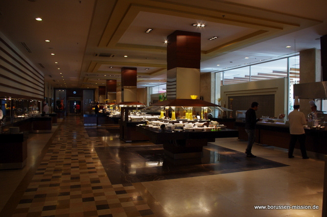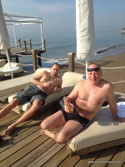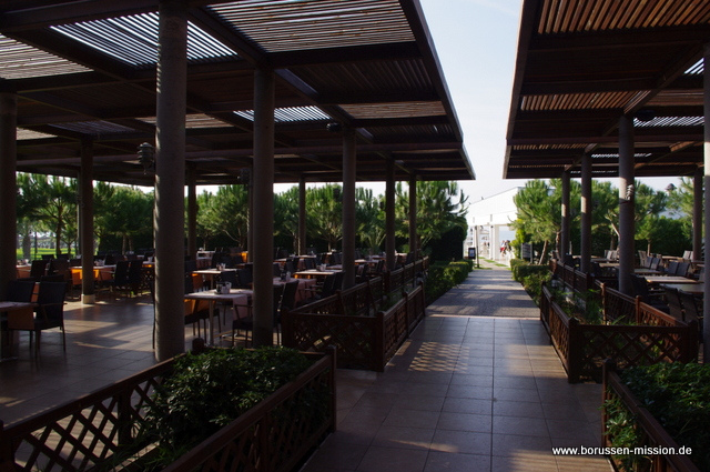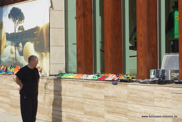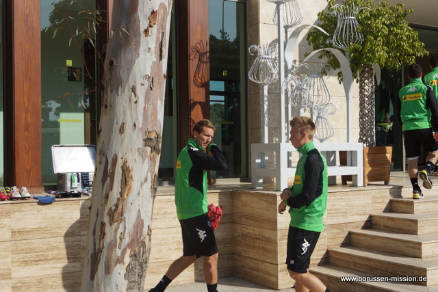 Das Vormittagstraining war von unseren Reiseteilnehmern nicht so gut besucht, da das diesjährige schöne Wetter einige Borussen dazu einlud, in dieser Zeit lieber den beheizten Pool auszuprobieren, sie hatten sichtlich ihren Spaß dabei. Nach dem Training gesellten einige sich dazu, andere gingen zum Einkaufen ins Winterschlaf haltende Zentrum von Belek. Da am Nachmittag keine Trainingseinheit angesetzt war, nutzten viele das kostenfreie Hallenbad und den „heißen Stein“ zum Ausspannen, bevor es nach der Völlerei wieder an die Bars ging, schließlich war ja alles im Urlaubspreis inbegriffen.