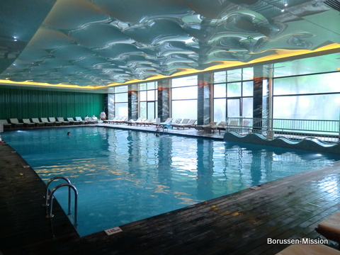 Für das Wintertrainingslager 2015 entschied sich die Vereinsführung unserer Borussia aus Mönchengladbach erneut für das “MAXX ROYAL” an der türkischen Riviera in Belek, wie im letzten Jahr. Vom 07.01.-15.01.2015 schlugen sie dort ihre Zelte auf. Die Borussenfans aus der Mitte der neuen Bundesländer folgten ihnen in zwei Gruppen am Wochenende. Der Großteil saß aber erst am Sonntag im Flieger und so verpassten sie den Testspielsieg gegen den Tabellenführer der dritten Liga – Arminia Bielefeld – durch die beiden Tore von Branimir Hrgota. Gern denken wir an die Siege auf der Bielefelder Alm zurück, vielleicht ergibt es sich mal wieder. Etwa zeitgleich erreichte die Gruppe mit dem Condorurlaubsflieger aus Leipzig den Flughafen von Antalya und nachdem alle ihr Gepäck hatten, ging es zum Bus. Dieser war nur mit ihnen besetzt und so ging es fast ohne Zwischenstopp zum Hotel. Der Biervorrat des Busses reichte nicht aus und so ließ „Isaak“ zur Proviantaufnahme einen Stopp machen. Im nun zum dritten Mal besuchten Hotel „Voyage Belek Golf & Spa“ stellten einige Borussen fest, dass der Bereich der Rezeption verändert wurde, aber zum Glück die Bar noch da ist. Ein Mitarbeiter des Empfangs machte für die Einzelzimmerbucher ein tolles Angebot, zwecks unentgeltlicher Umbuchung auf ein „Villazimmer“, welches über 2 Etagen mit separaten Bädern mit Whirlpool und Swimmingpool vor der Terrasse geht. Dieses Angebot wurde von ihnen angenommen. Bevor man dies aber bewundern konnte, ging es zum Büffet und danach zum Begrüßen der Freunde. Bis in den Morgenstunden vertrieb man sich die Zeit an den Bars und der Disco, manch einer genehmigte sich zu später Stunde noch eine Absackersuppe im Yaki Yaki Restaurant.